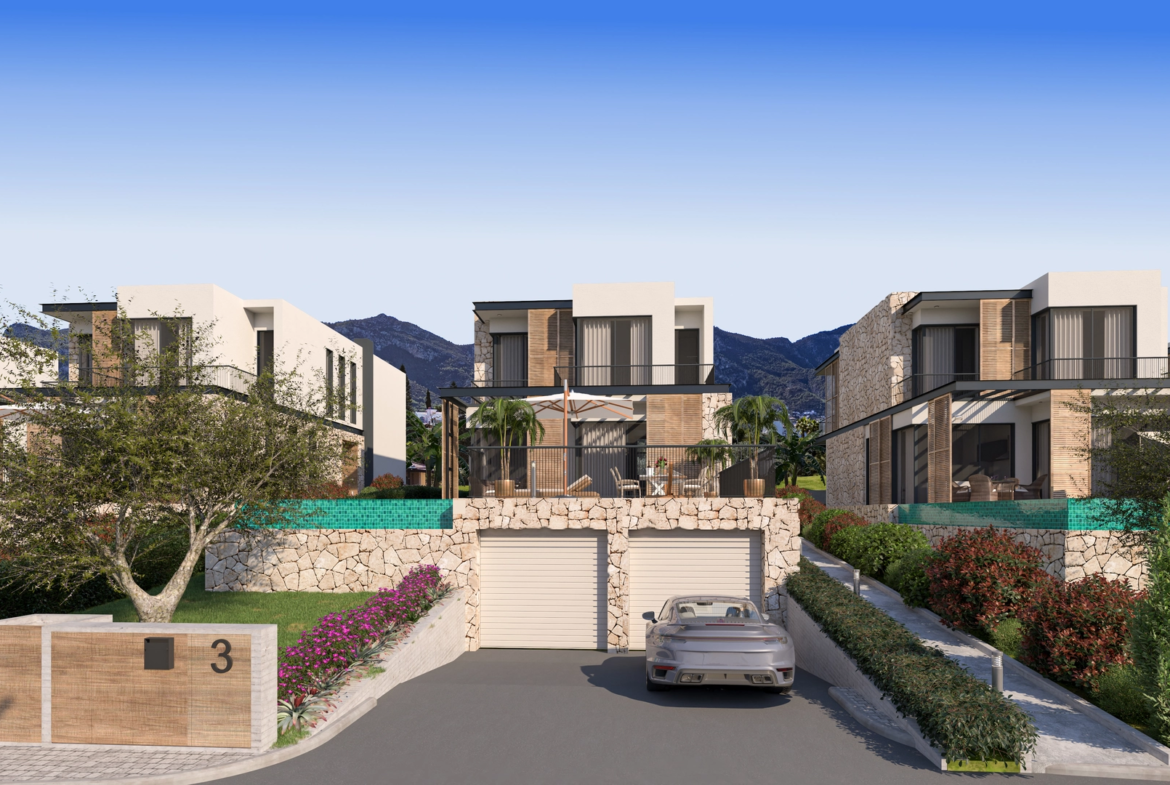 This North Cyprus villa for sale in Ozankoy, Kyrenia is located in one of the most exclusive and scenic areas of the region. Surrounded by historic olive trees, with breathtaking mountain and sea views, the project offers a peaceful yet prestigious lifestyle.